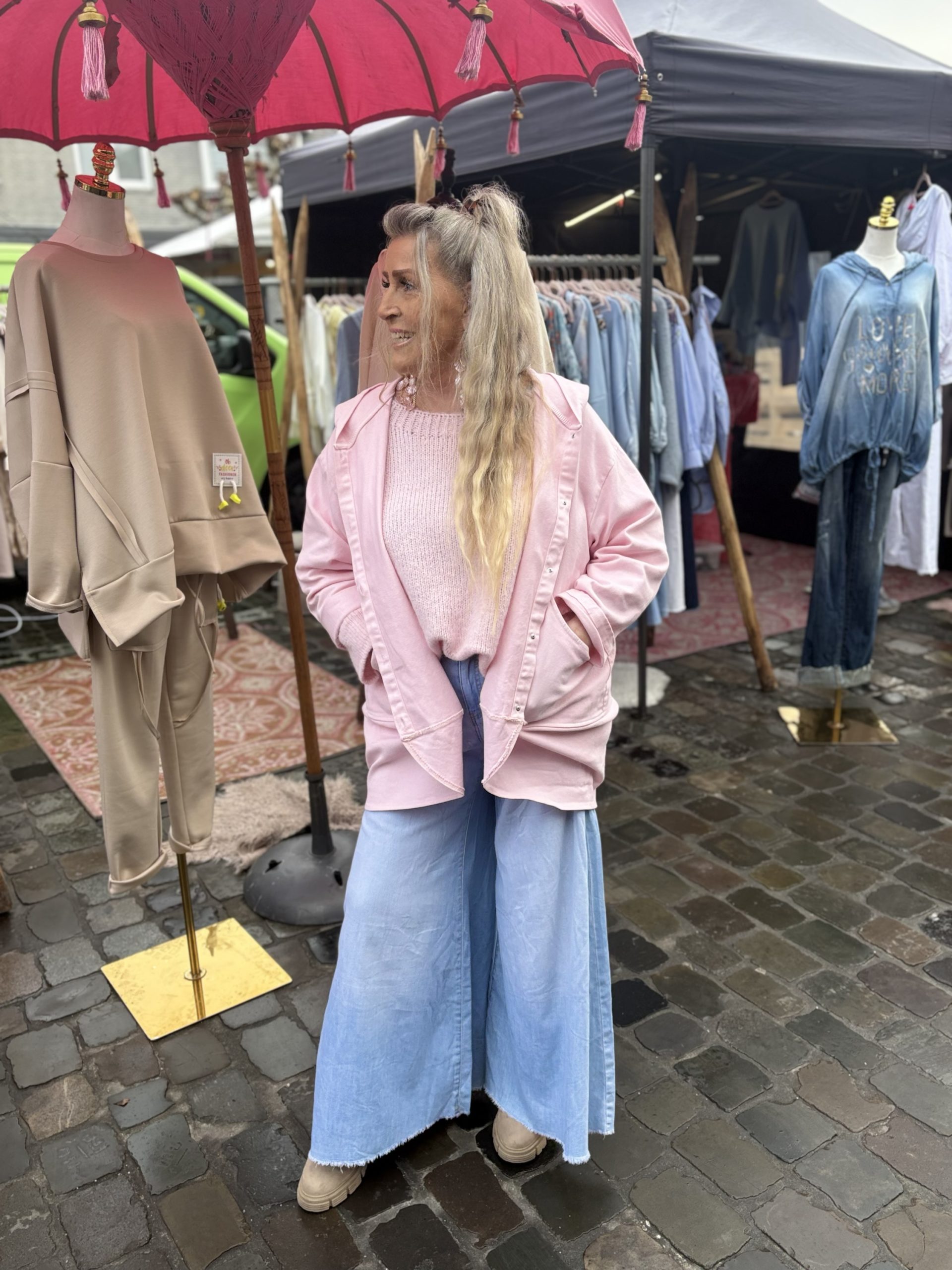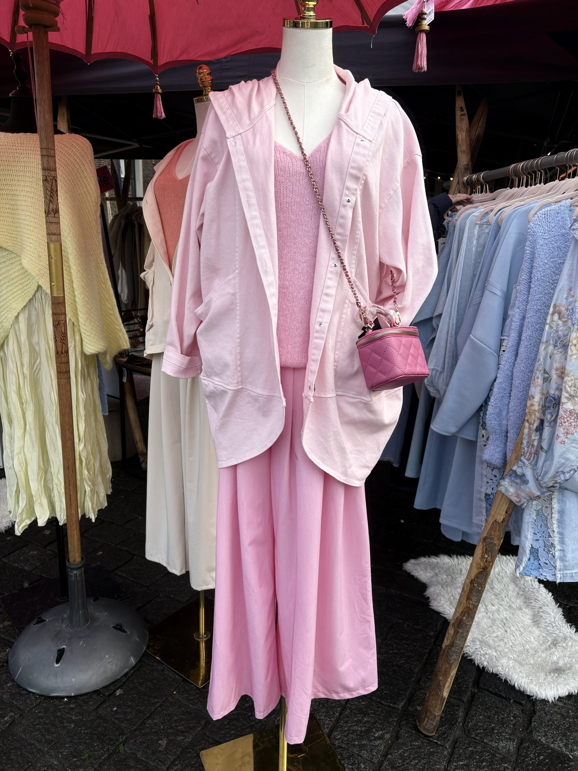 Jacket met zakken en capuchon – Roza